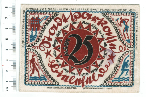 Bielefeld: 25 Mark 1921 (Stoffgeld / Notgeld)