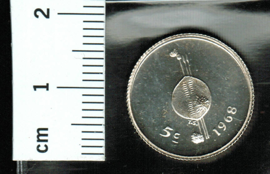 Swasiland: 5 Cents 1968 Nkhotfotjeni, Y*01, Swasischild und Speer
