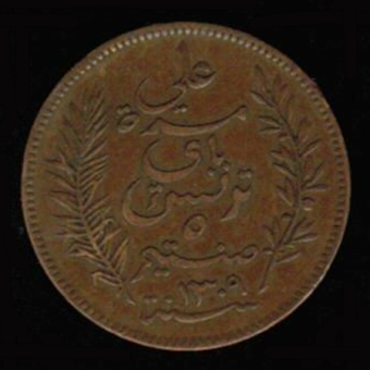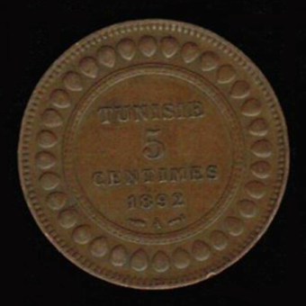 Tunesien: 5 Centimes 1892, Y*221, französische Besatzung