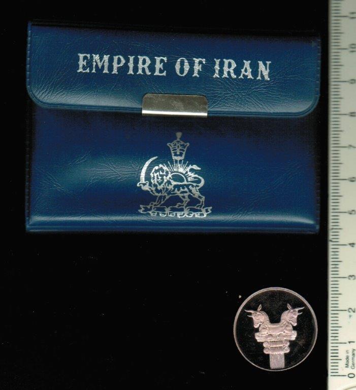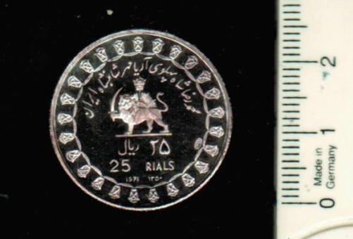 Iran/Persien: 25 Rials: SH1350/AD1971: 2500 Jahre, Stierkopfsäule Palast Artaxerxes in Sua / Name und Titel des Schahs, weltweit 13.300, Silber im Etui