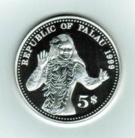 Palau 5 Dollars 1999, Y 51 Christliche Jahrtausendwende Weltkarte in Farbe T?nzerin -Silber-