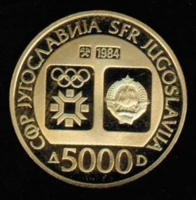 5.000 Dinara, Olympiade in Sarajewo 1984, Olympische Flamme, in Dose, Gold