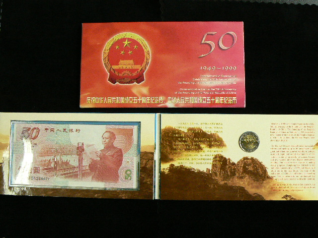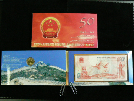 China: 50 Jahre Volksrepuplik, 1999: 50 Yuan + 10 Yuan im Set