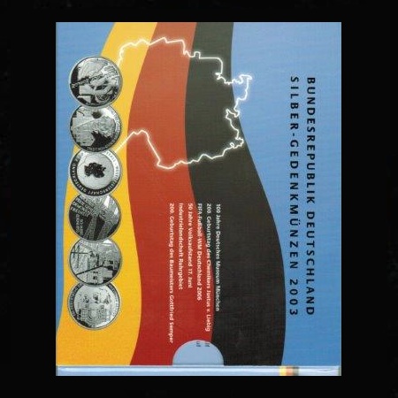 Deutschland, 10 Euro, Silber-Gedenkm?nzen-Set 2003, 6 x 10 Euro in OVP, Silber PP