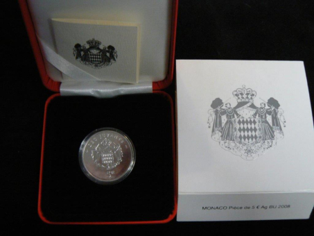 Monaco: 5 Euro, 2008 'BU': '50. Geburtstag: Albert II.' mit Zertifikat
