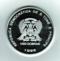 Sao Tomé und Principe: 1.000 Dobras 1998, Y 80, Kolibrimotiv, Silber/Bunt/Kinegramm